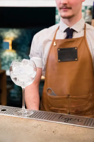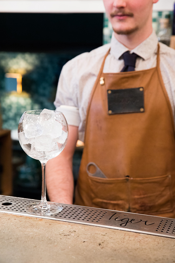 “Ice is essential in our preparations, the Gin Tonic for instance, is served in a wide baloon glass, poured amongst ice cubes”