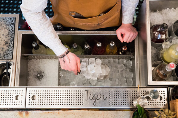Im Tiger verschicken die Mitarbeiter zwischen Freitag- und Samstagabend mindestens 300 bis 450 Cocktails. Dies erfordert konstante Eisproduktion. Die Kombination von Würfeleis- und Nuggeteismaschine ist die perfekte Lösung.