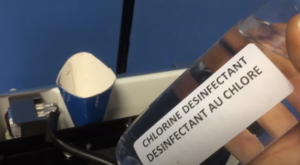 …and fill in your sodium hypochlorite solution. The liquid will rapidly run through the inside of the machine, thoroughly disinfecting the inner parts.