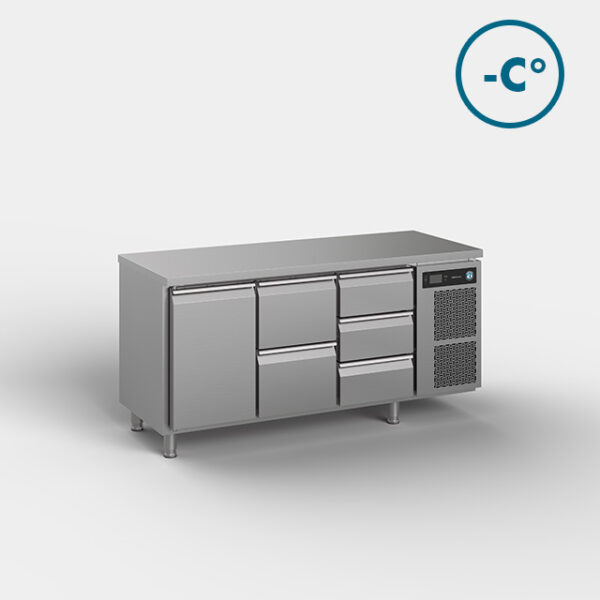 The Hoshizaki PREMIER is a series of heavy-duty cabinets and counters for energy-efficient refrigeration (Climate Class 4/5), catering to the needs of busy commercial kitchens. The durable design with solid door hinges, stainless steel, and a flawless finish is built to withstand the most demanding kitchen operations. The PREMIER cabinets are available with legs instead of castors.